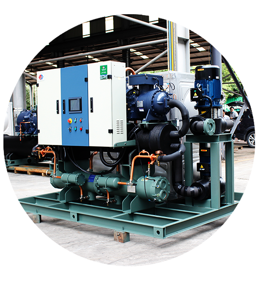 工藝冰水系統(tǒng)制冷系統(tǒng)機(jī)房采用恒星40STD-1400WDM24、40STD-980WD3乳品行業(yè)1.5-2℃出水專用工藝冰水制冷機(jī)組。...